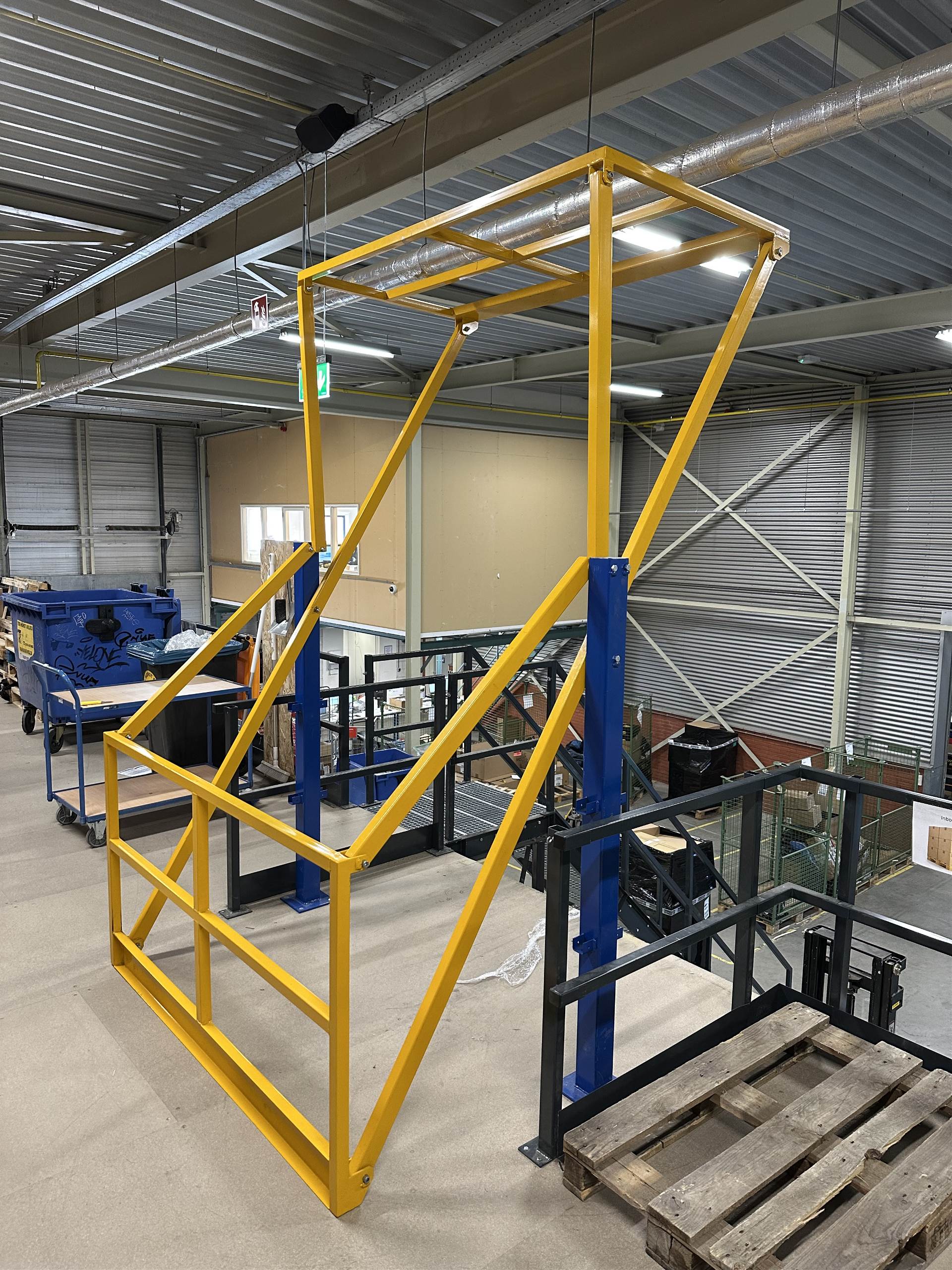 Een kantelhek wordt gemonteerd bij een op- en afzetplek en zorgt dat je veilig en gemakkelijk pallets op de verdiepingsvloer kunt plaatsen.